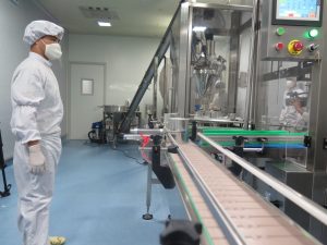 – Mỗi đầu chiết bột đều có nắp chụp kín với miệng lọ chai và có rung cũng như hút bụi để tránh bụi bay ra ngoài phòng sản xuất.