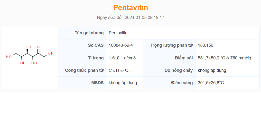 Công thức hóa học của hoạt chất Pentavitin